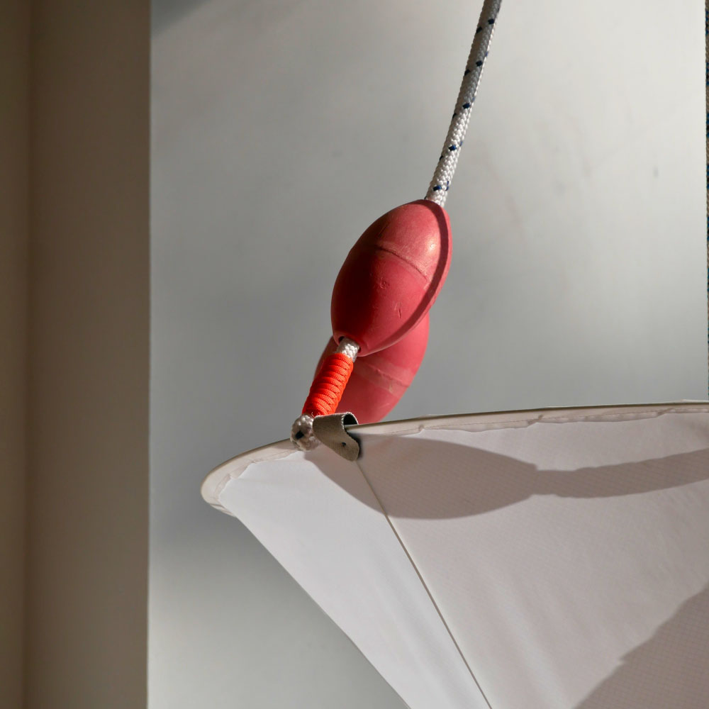 Le flotteur​Un système ingénieux associant corde, flotteurs et structure aérienne en tissu. Il défie les lois de la gravité en restant en suspens, tournoyant dans les airs pendant plusieurs secondes.
