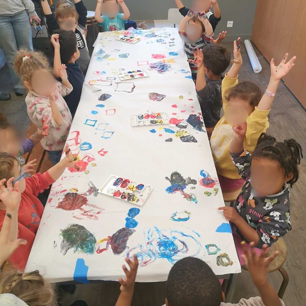Cet atelier invite les enfants à découvrir la couleur de manière sensorielle, à travers le toucher et le mouvement. Pensé comme un moment convivial et ludique, il sollicite l’ensemble des sens des mini-artistes afin de favoriser l’exploration libre, l’observation des gestes, le mélange des couleurs et le tracé des doigts sur le support.