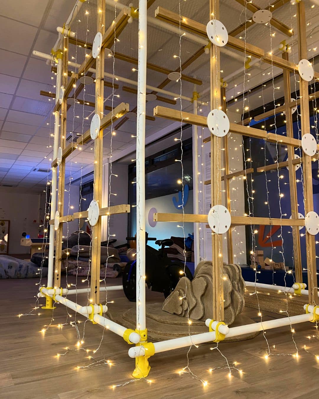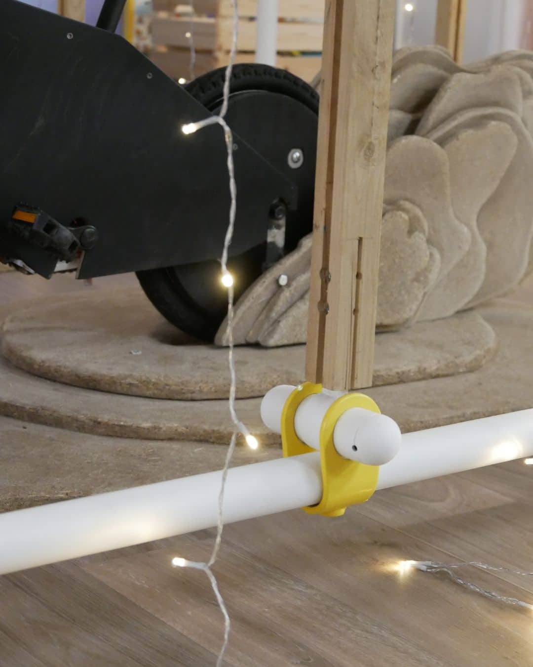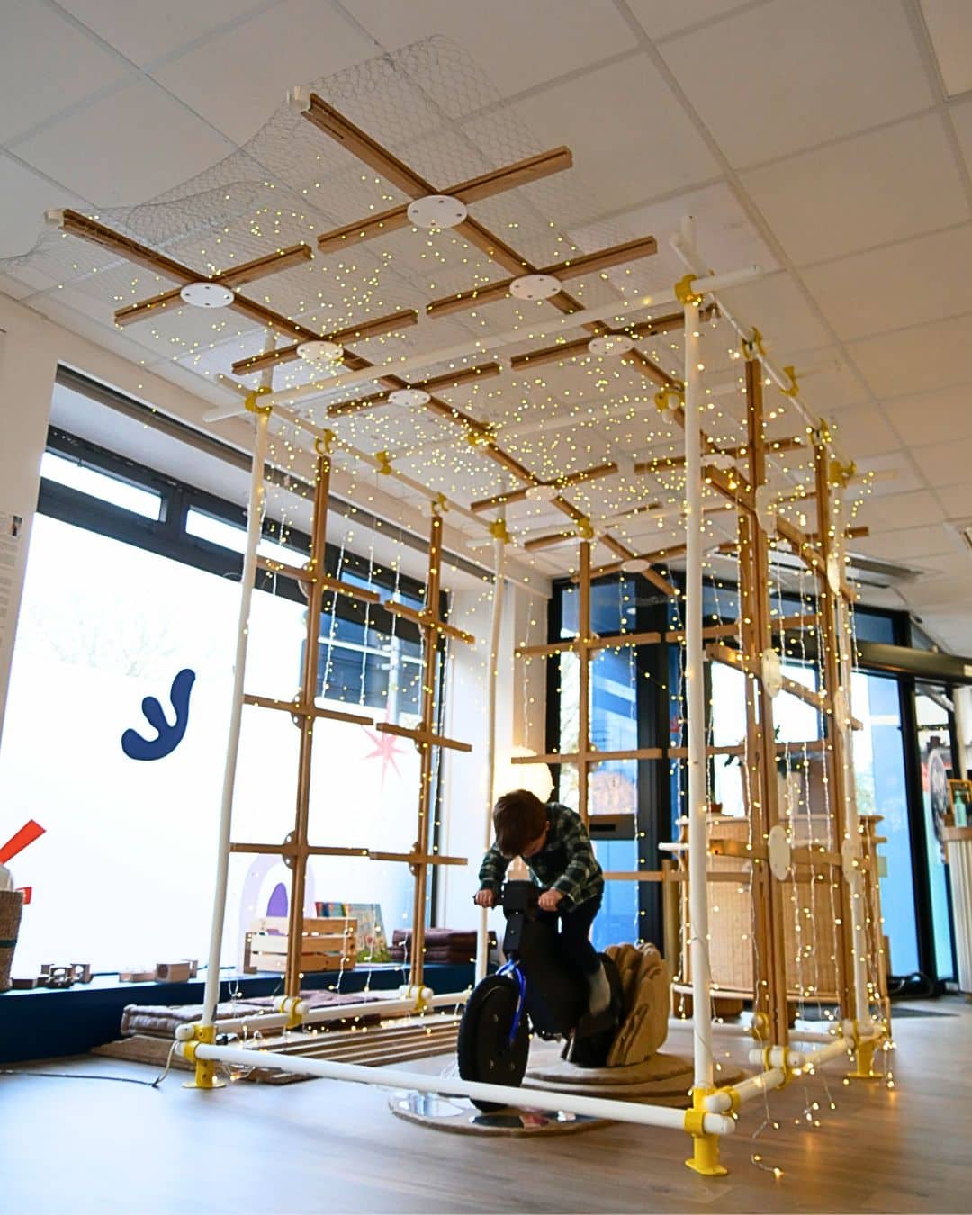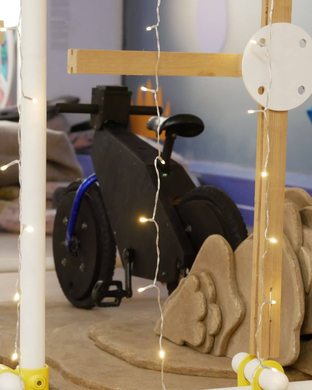 À Noël, au Musée des Mômes, la Cabane à Idées évolue et devient La Fabrique à Étoiles.Dans cette nouvelle version, un vélo en low-tech permet de produire sa propre énergie : en pédalant, les enfants allument peu à peu des guirlandes lumineuses et donnent vie à la cabane.